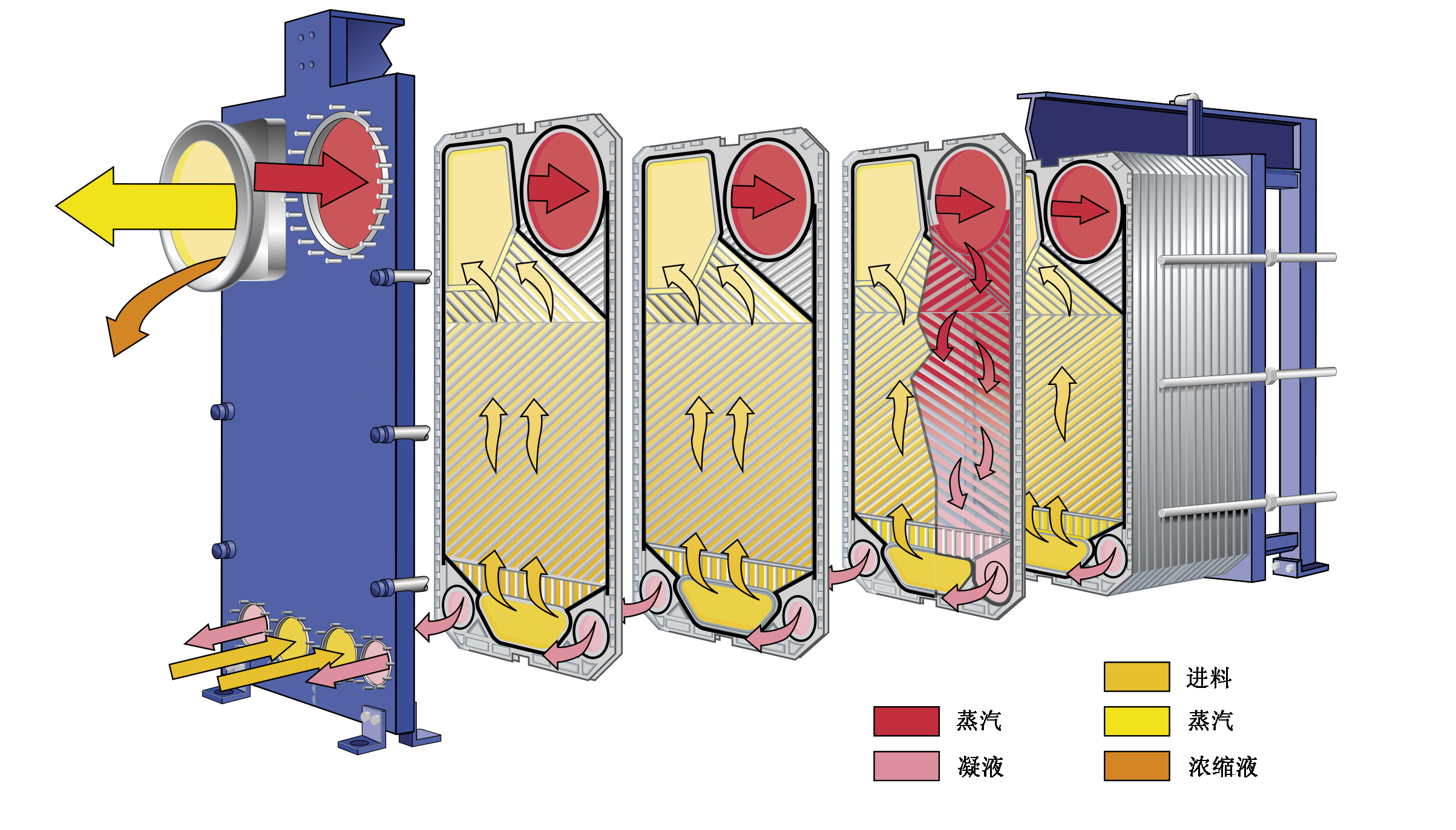 板式蒸发器工作原理: